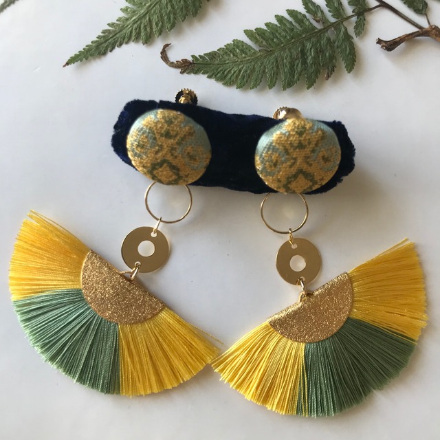 sold♻️一点物 西陣織古裂の33〼イヤリング+ももたすの文化的耳飾りnemu8_大(色番11.12)