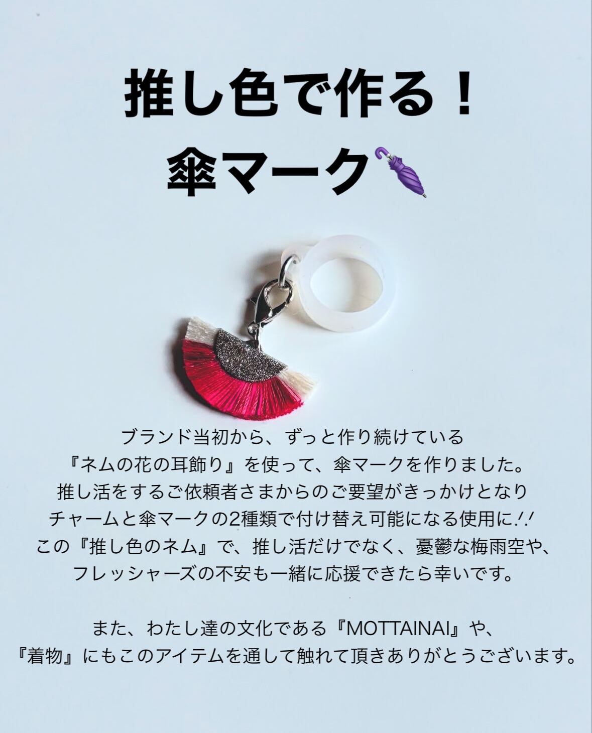 【傘マーク】全67色〜!|雨ニモマケズ咲く #推し色のネム 作らせて下さい!no.430|憂鬱な梅雨も、フレッシャーズの不安も応援.ᐟ【reCAICO】着物の帯締めをアップサイクル!送料無料‼︎ | WA装研究所ももたす