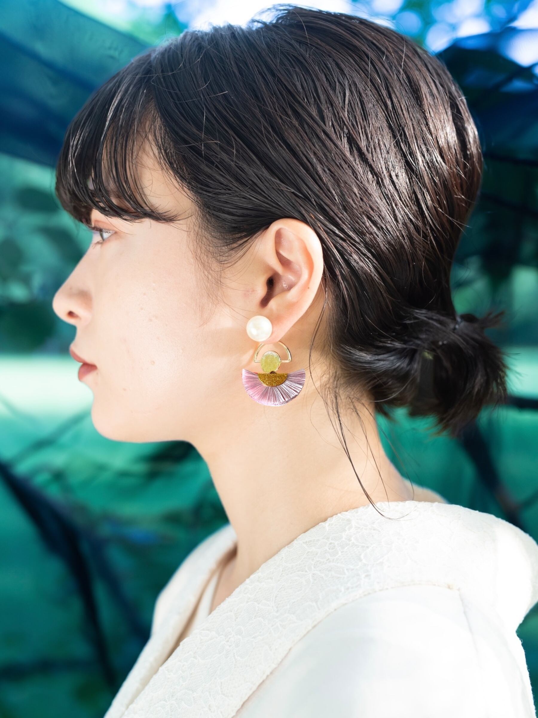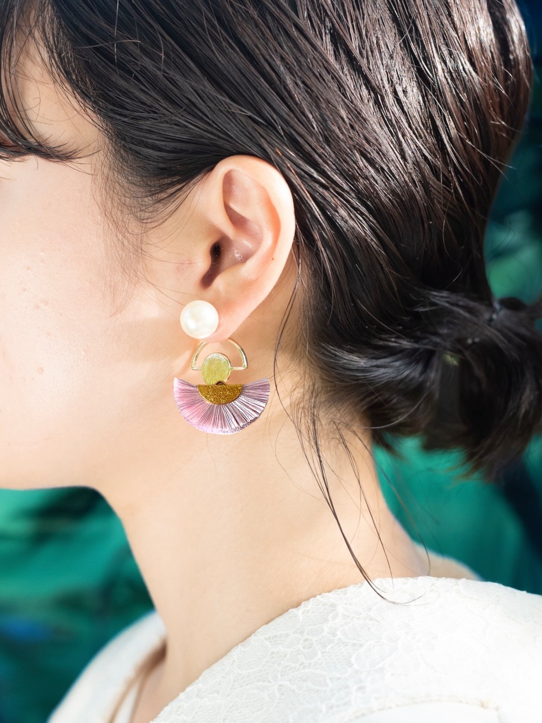 sold♻️ no.427(アレンジ)|NEMU_00g〔桃紫〕【reCAICO】#ネムの花の耳飾り 絹糸をアップサイクル!