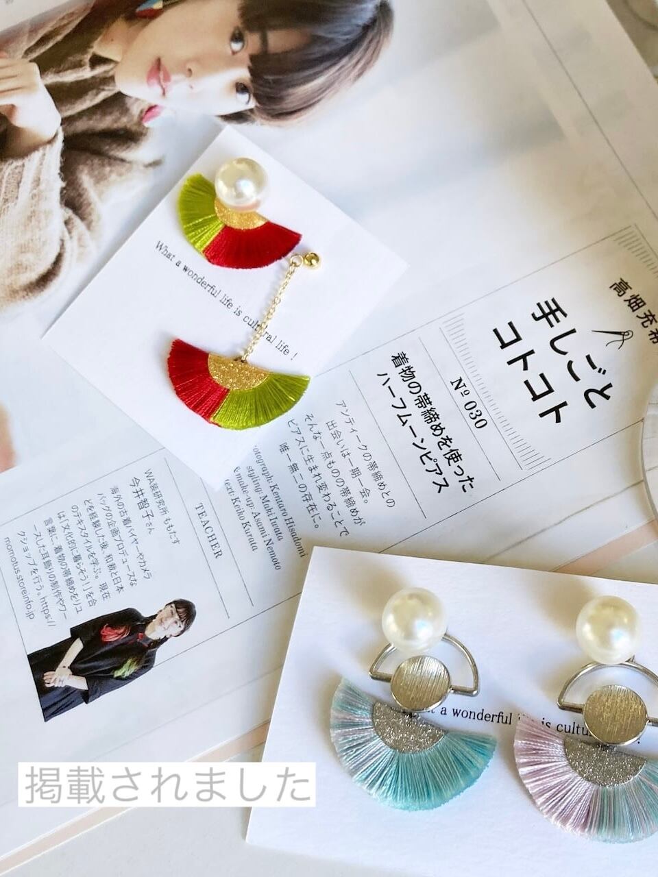 循環済♻️sold! no.294(アレンジ)|再販不可|NEMU_02g 〔黄虎〕【reCAICO】#ネムの花の耳飾り 結城紬の絣糸をアップサイクル!