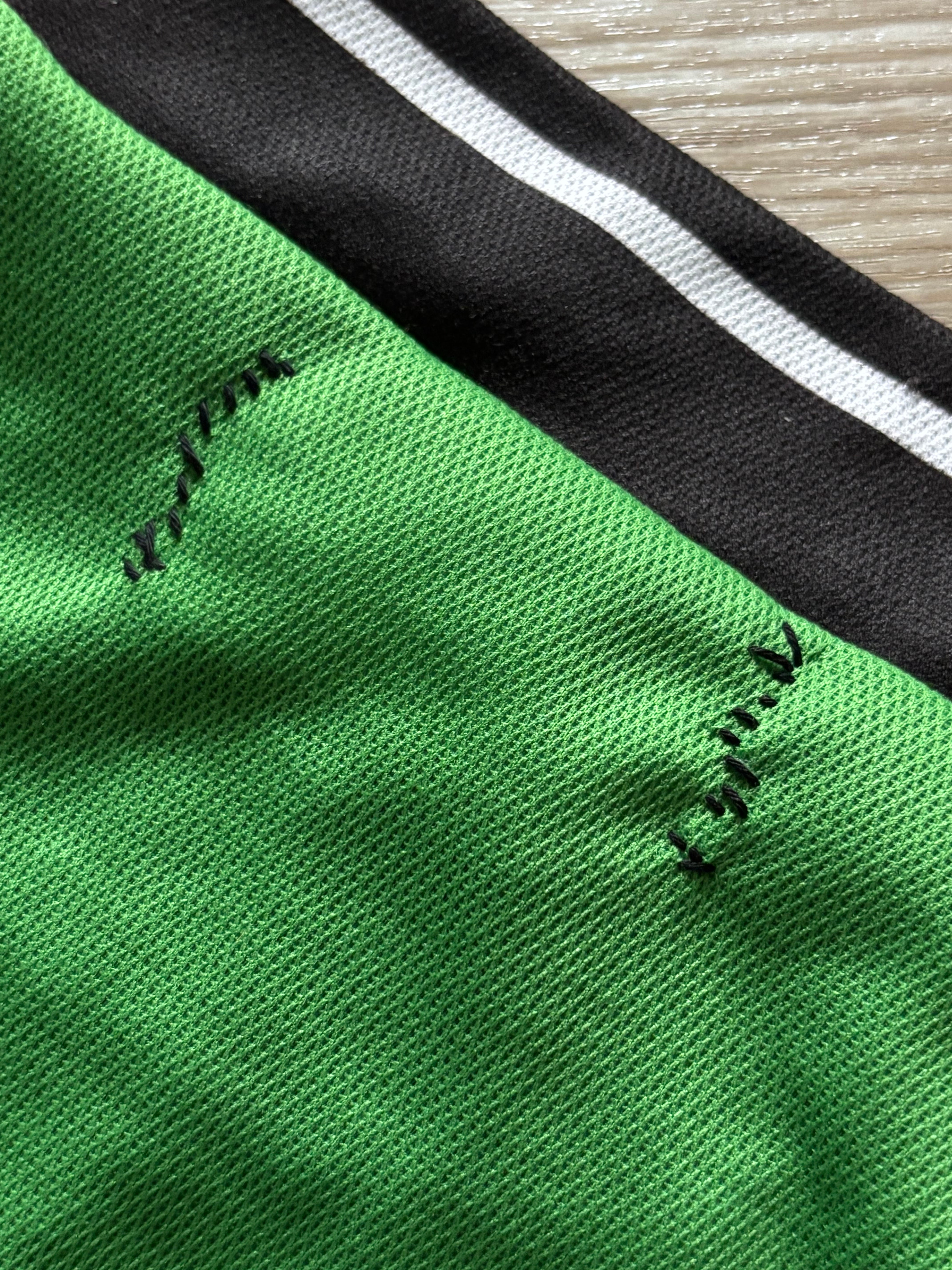ブランドタグも着物の絹地を有効利用してひとつひとつ手作りし、手で縫い付けています。