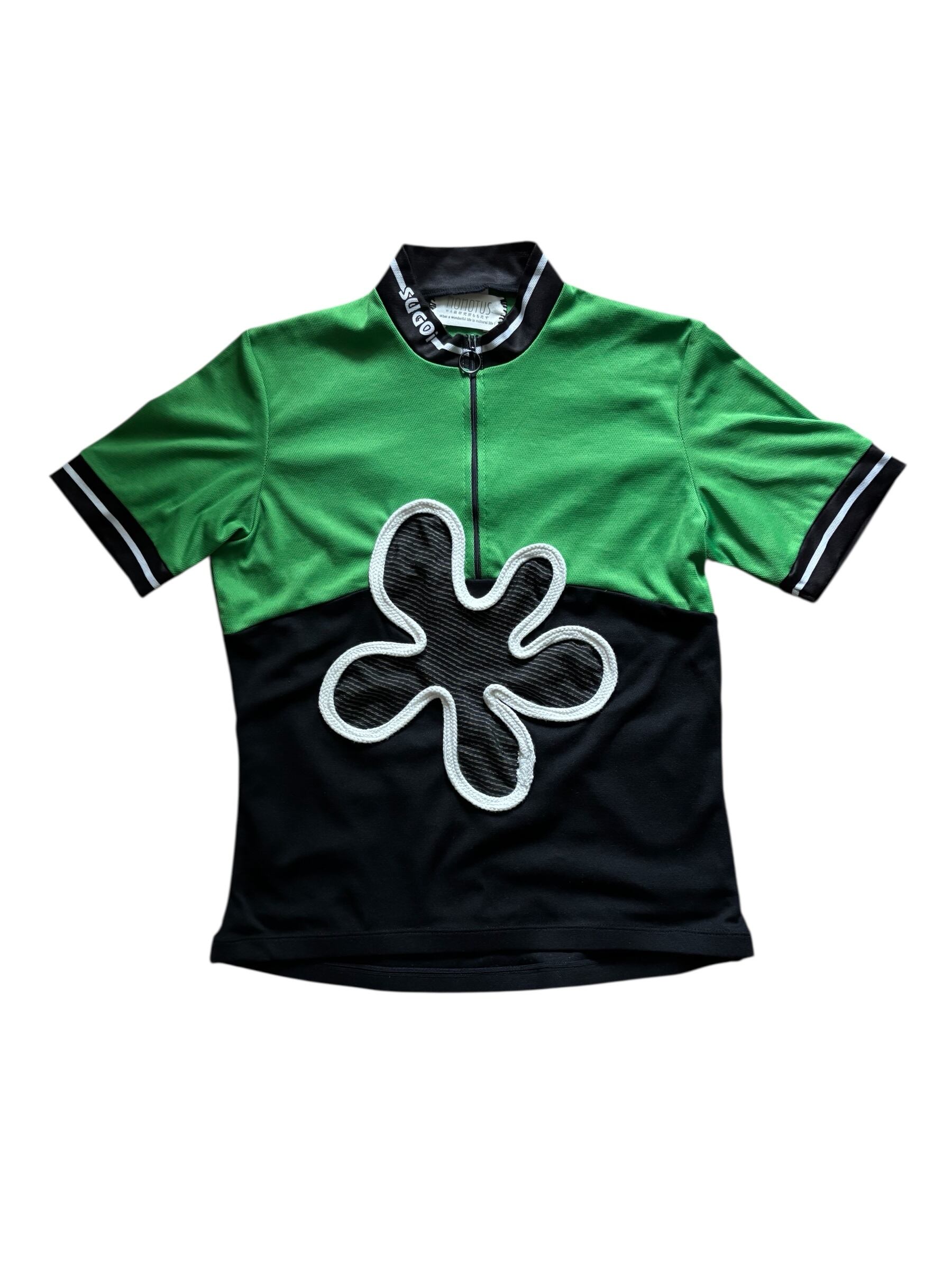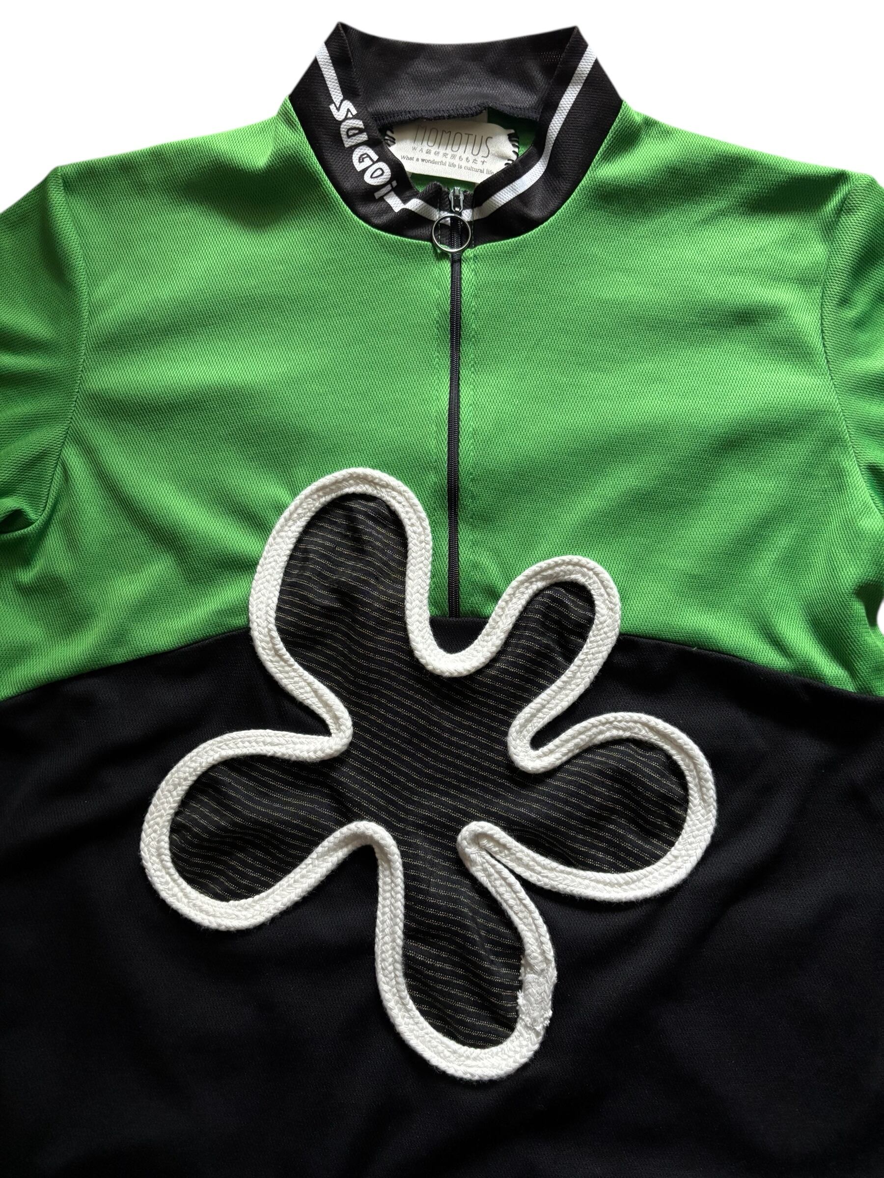 このお花モチーフは、東京のSHIBUYAを中心に大活躍されるとってもイカしたDJの方に浴衣を作らせてら頂いた時に誕生しました。DJのおしごとは、音楽を上手に繋いでフロアのグルーヴをつくる事!そんな楽しいvibesをシケらせないように、ポップでダンサブルな浴衣にしたくてイメージしていた時、このお花は生まれました!