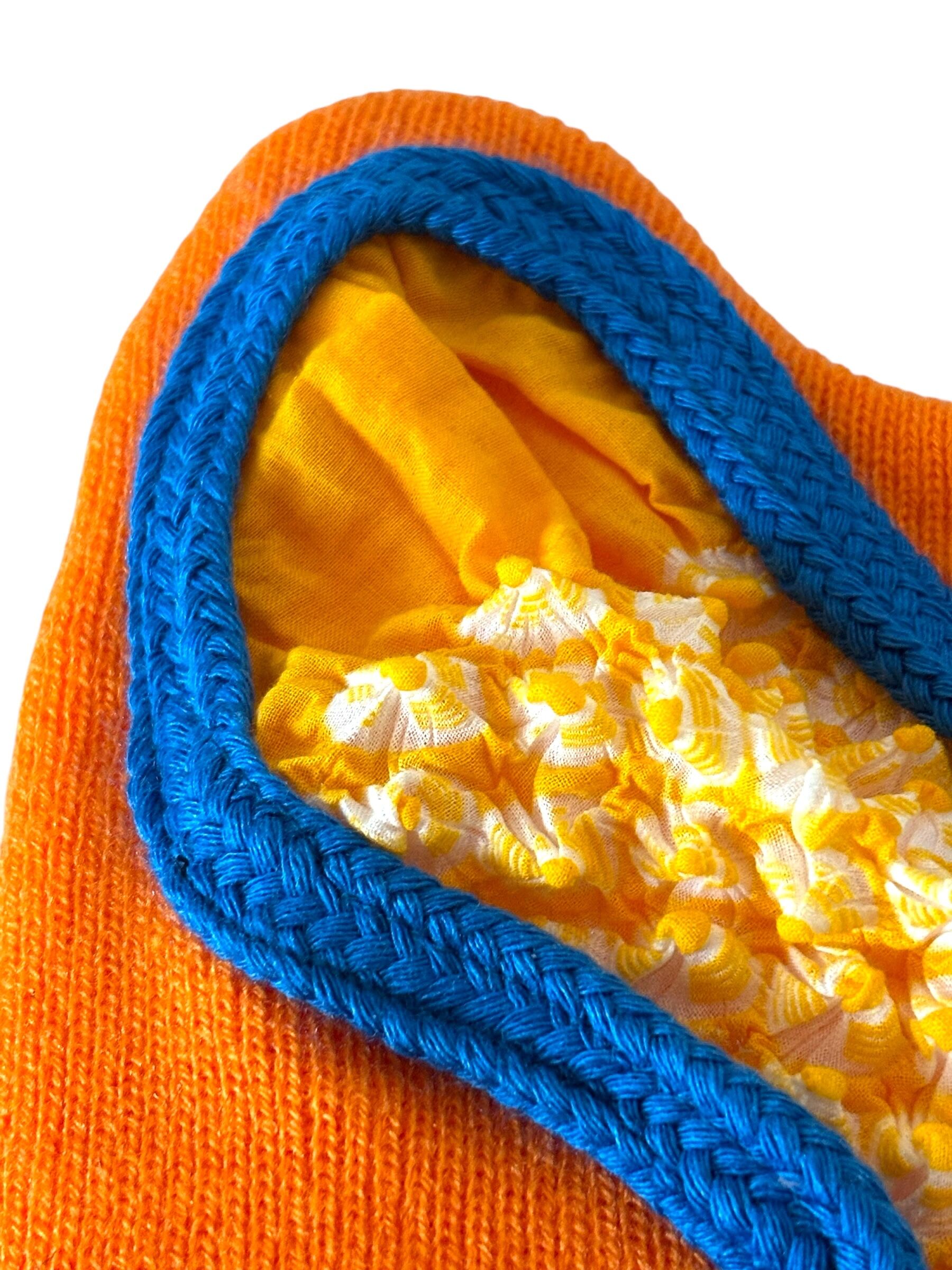 このお花モチーフは、東京のSHIBUYAを中心に大活躍されるとってもイカしたDJの方に浴衣を作らせてら頂いた時に誕生しました。DJのおしごとは、音楽を上手に繋いでフロアのグルーヴをつくる事!そんな楽しいvibesをシケらせないように、ポップでダンサブルな浴衣にしたくてイメージしていた時、このお花は生まれました!