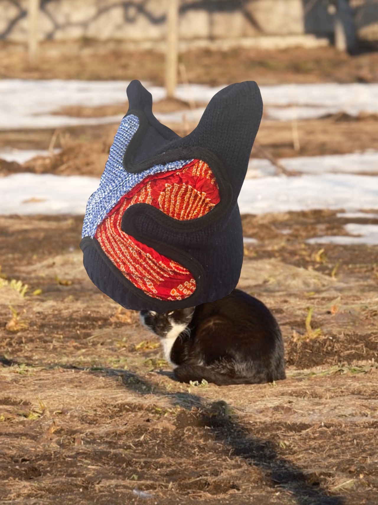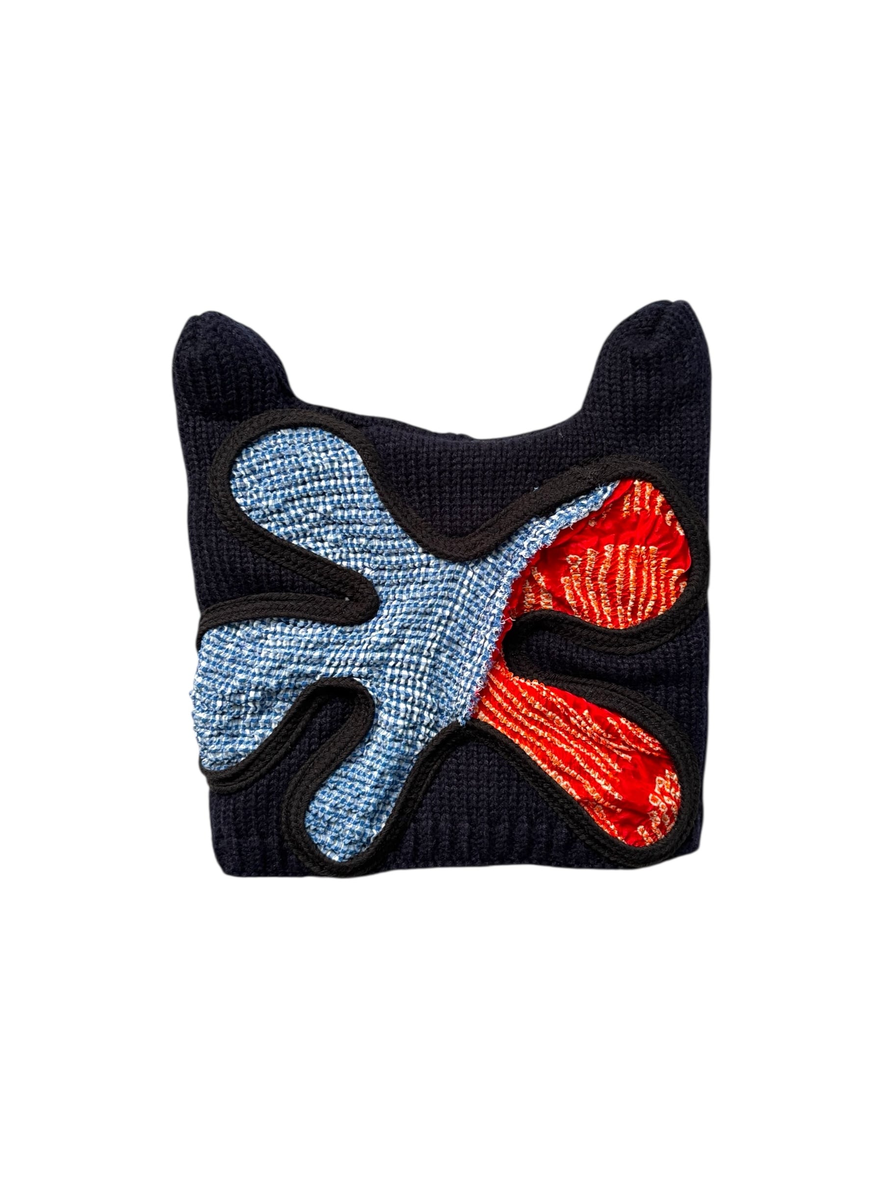 no.490|和レトロなy2k古着(#ふら和あーちゃん)KIMONOlab 札付きの着物リメイク! ねこ耳ビーニー(りんご追分ネイビー)