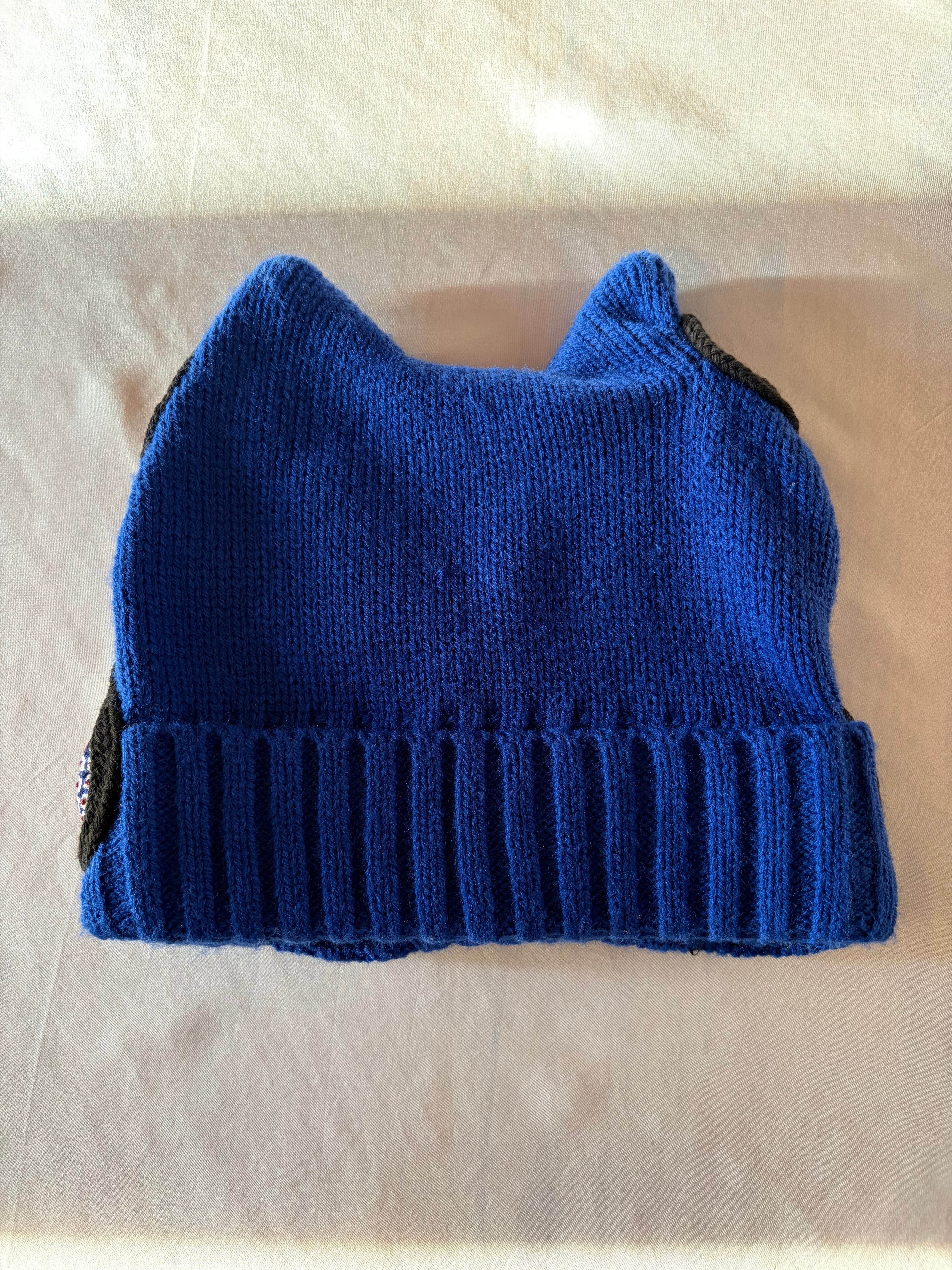 no.498|和レトロなy2k古着(#ふら和あーちゃん)KIMONOlab 札付きの着物リメイク! ねこ耳ビーニー(ラピスブルー)