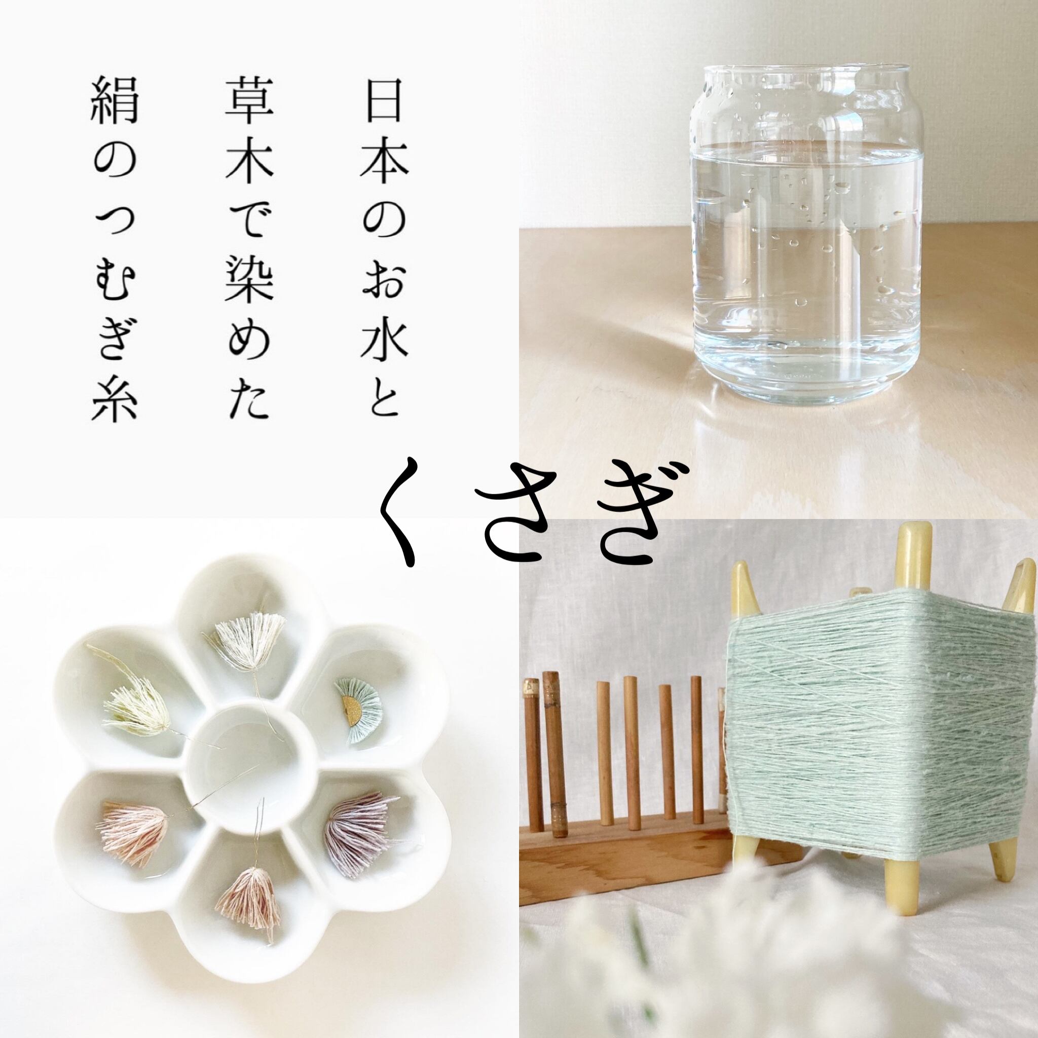 使用するつむぎ糸は全て草木染めで、毎年の植物達から頂き、着物の反物を織る方の手しごとによって手染めされた織物の残り糸です。MOMOTUSの耳飾りはその残糸を循環させるように作っています。
