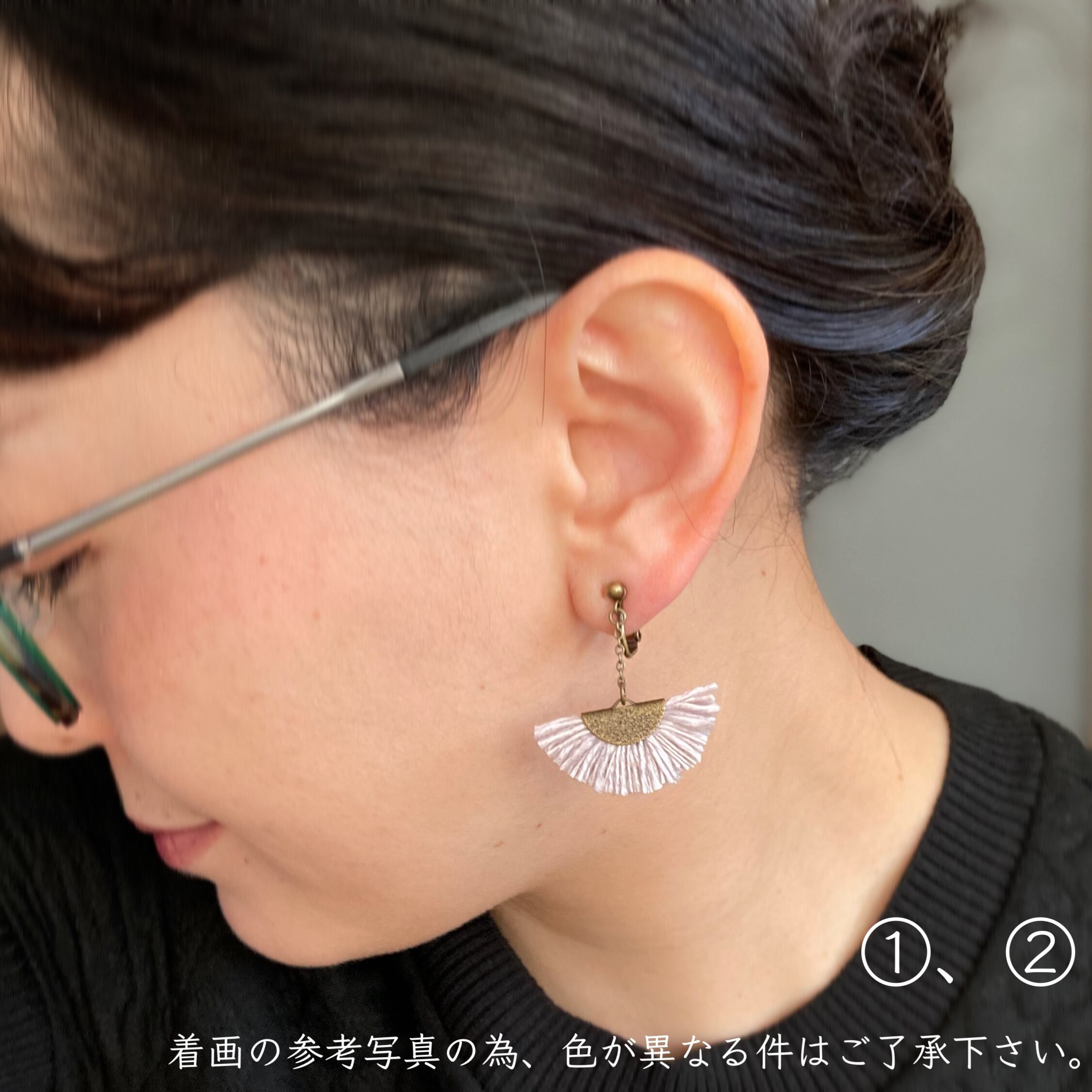 春一点は、ほっこり、ふわっとした太番手のつむぎ糸と、シャープで真っ直ぐな光が美しい帯締め絹糸を使い、カラフルで自由につくる春らしいNEMUシリーズです。質感の異なる2種類の絹糸が贅沢な耳飾りです。