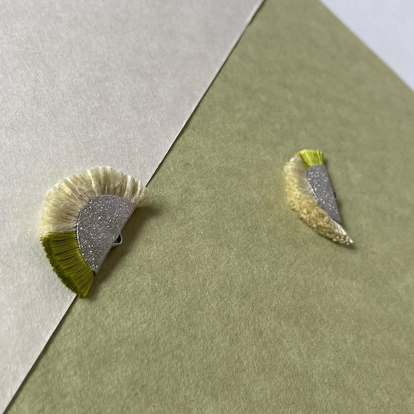 sold♻️【春一点】NEMUgi /G 〔色〕草木染め/たんぽぽ+黄緑(50) 【reCAICO】文化的耳飾り!絹糸をアップサイクル!