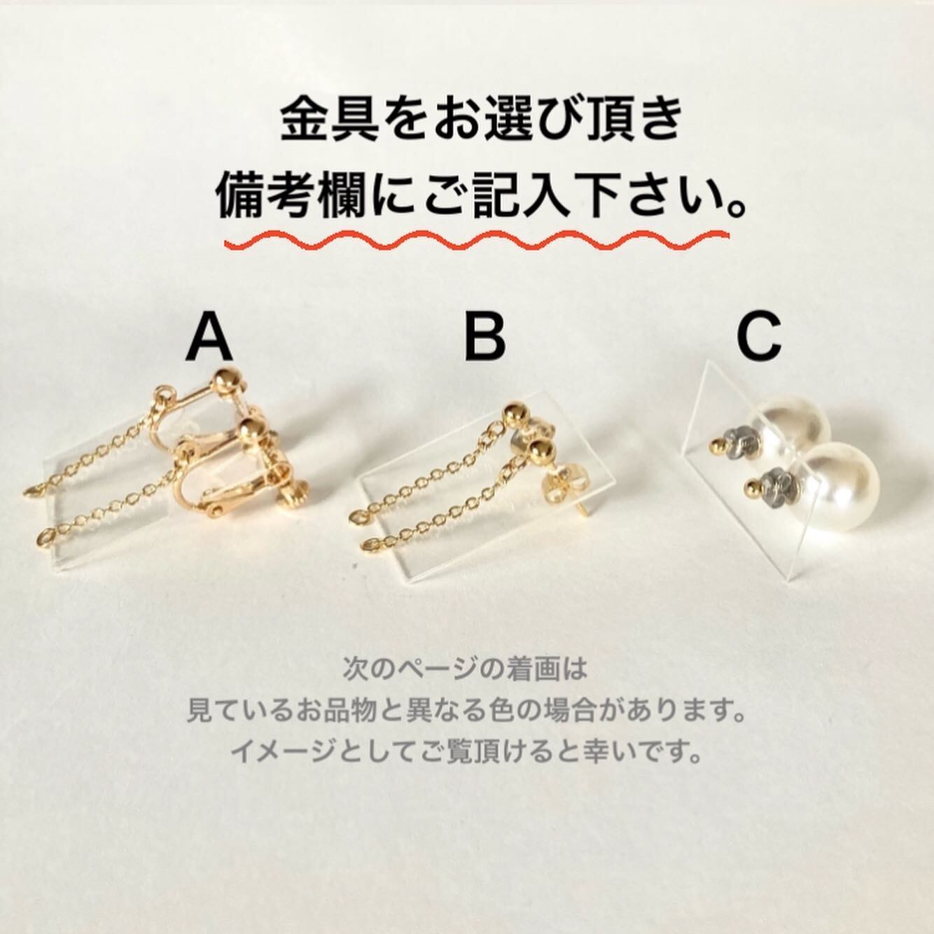 それ以外の、イヤリング、ピアスは全てニッケルフリー。(チェーン、キャッチは除く)