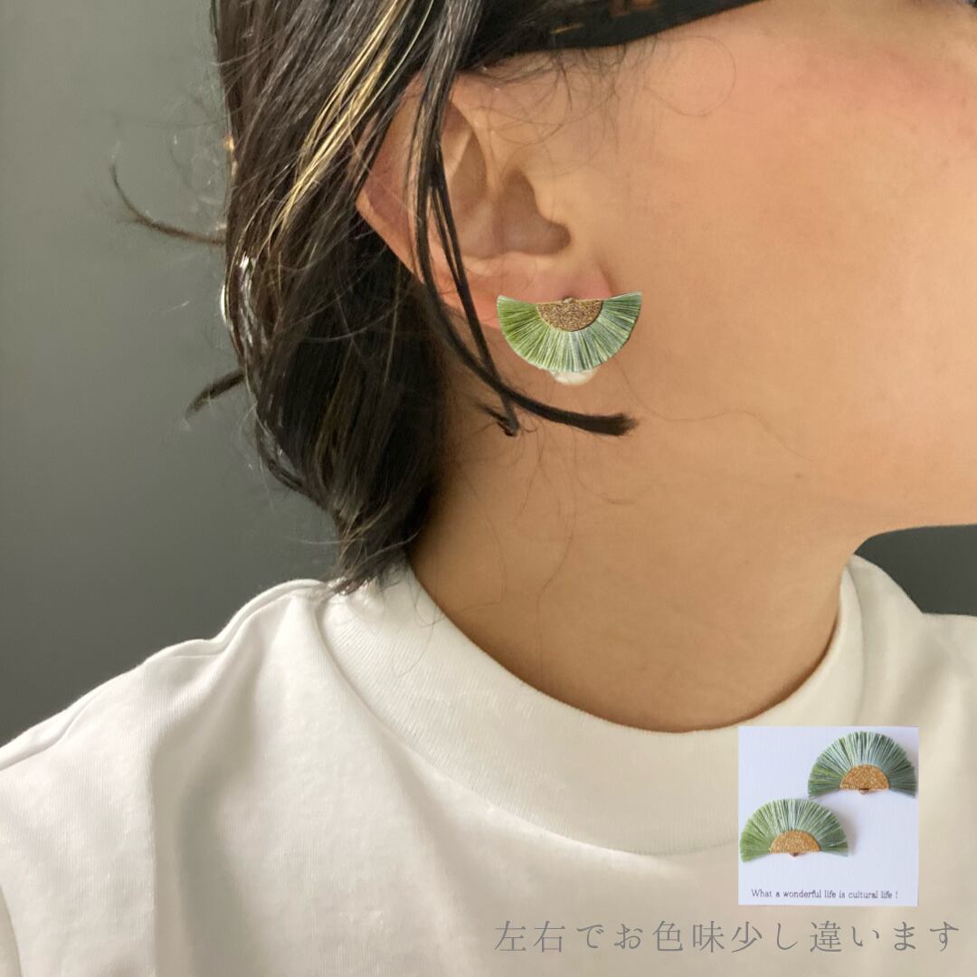 sold♻️ NEMU_00.01mixg〔色〕グラデ 白黄緑53/白緑59 (再生正絹アクセサリー【reCAICO】)文化的耳飾り!絹糸をアップサイクル!お新茶