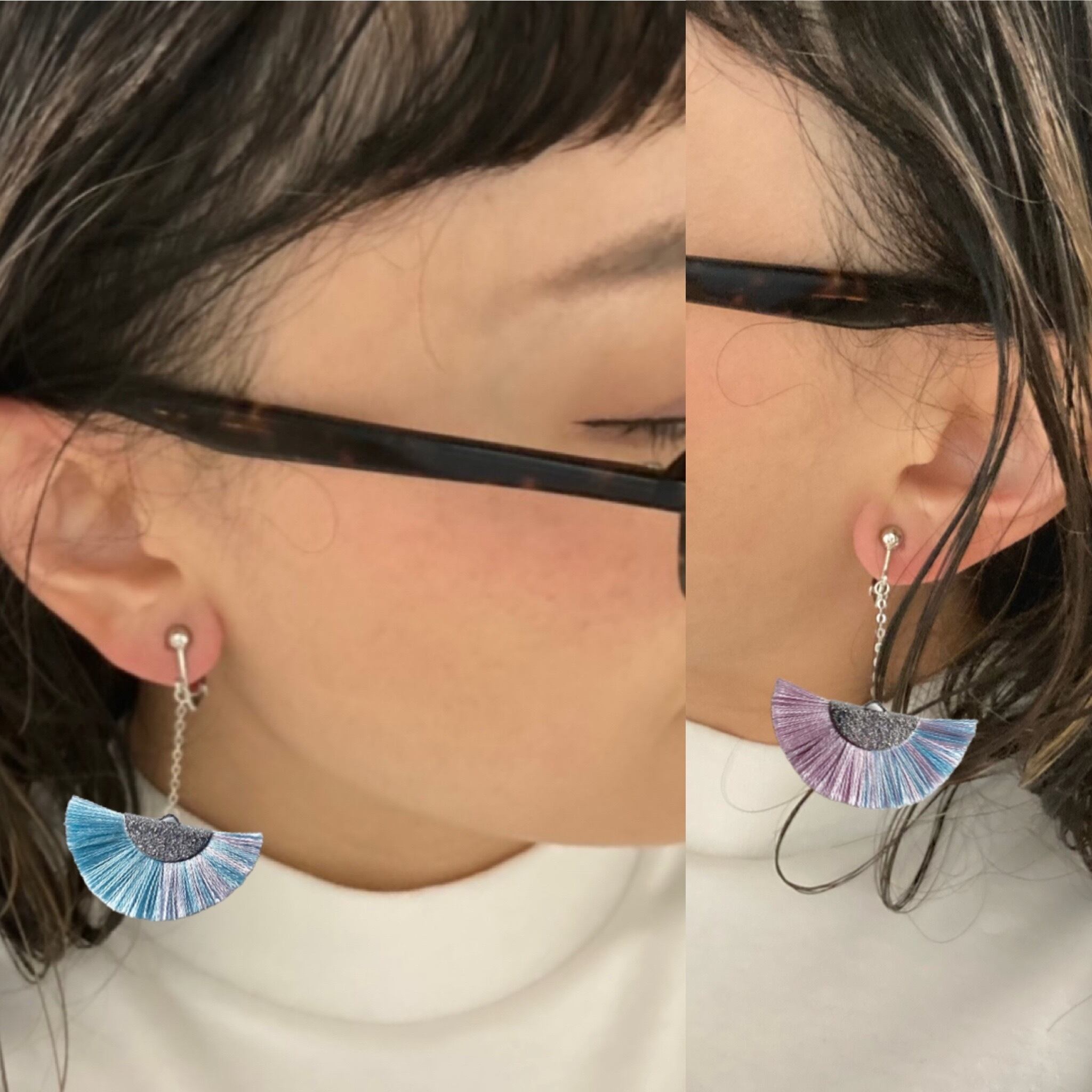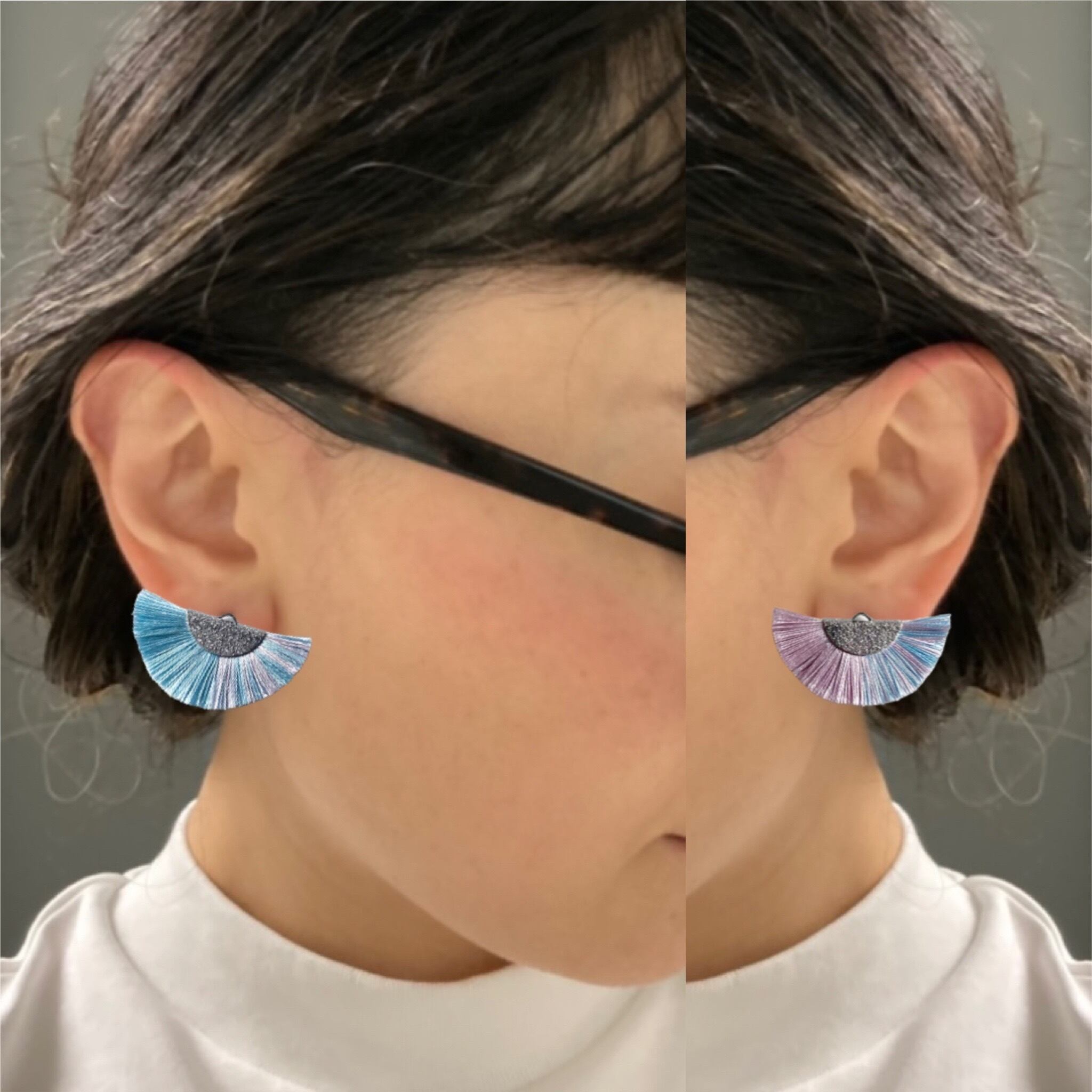 sold♻️ NEMU_00mixS 〔色〕水色36/乳白紫44【reCAICO】文化的耳飾り!絹糸をアップサイクル!