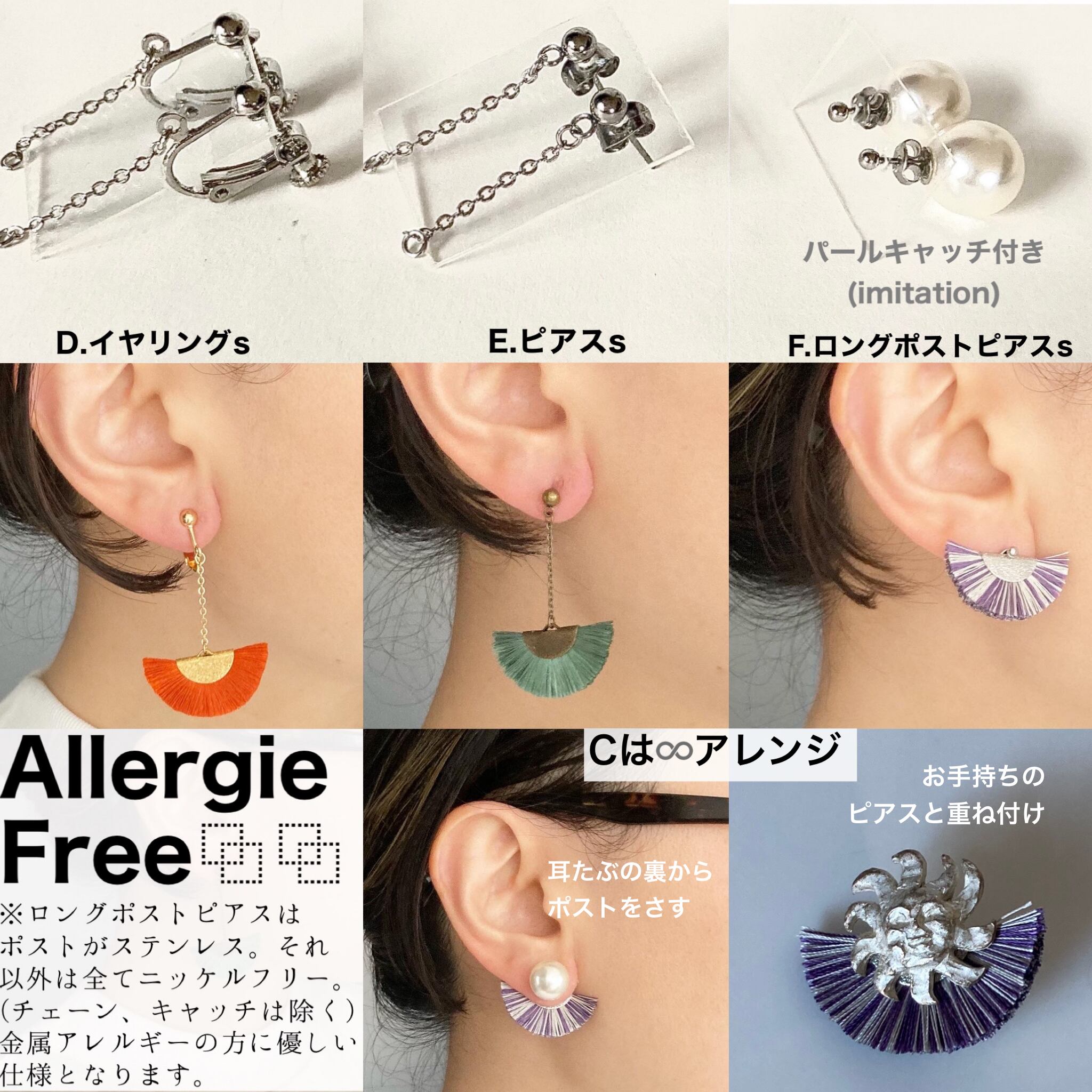 それ以外の、イヤリング、ピアスは全てニッケルフリー。(チェーン、キャッチは除く)