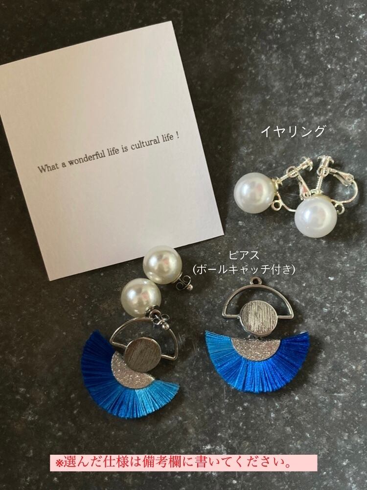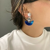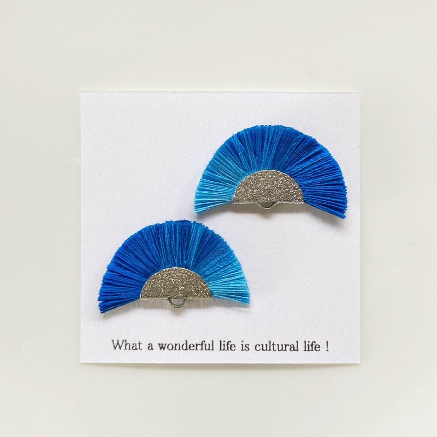 七夕限定7%OFF!送料無料★no.401|NEMU_ORBITパーツ/レギュラーサイズ_銀〔色〕天の川ブルー (再生正絹アクセサリー【reCAICO】)ネムの花の耳飾り!絹糸をアップサイクル!