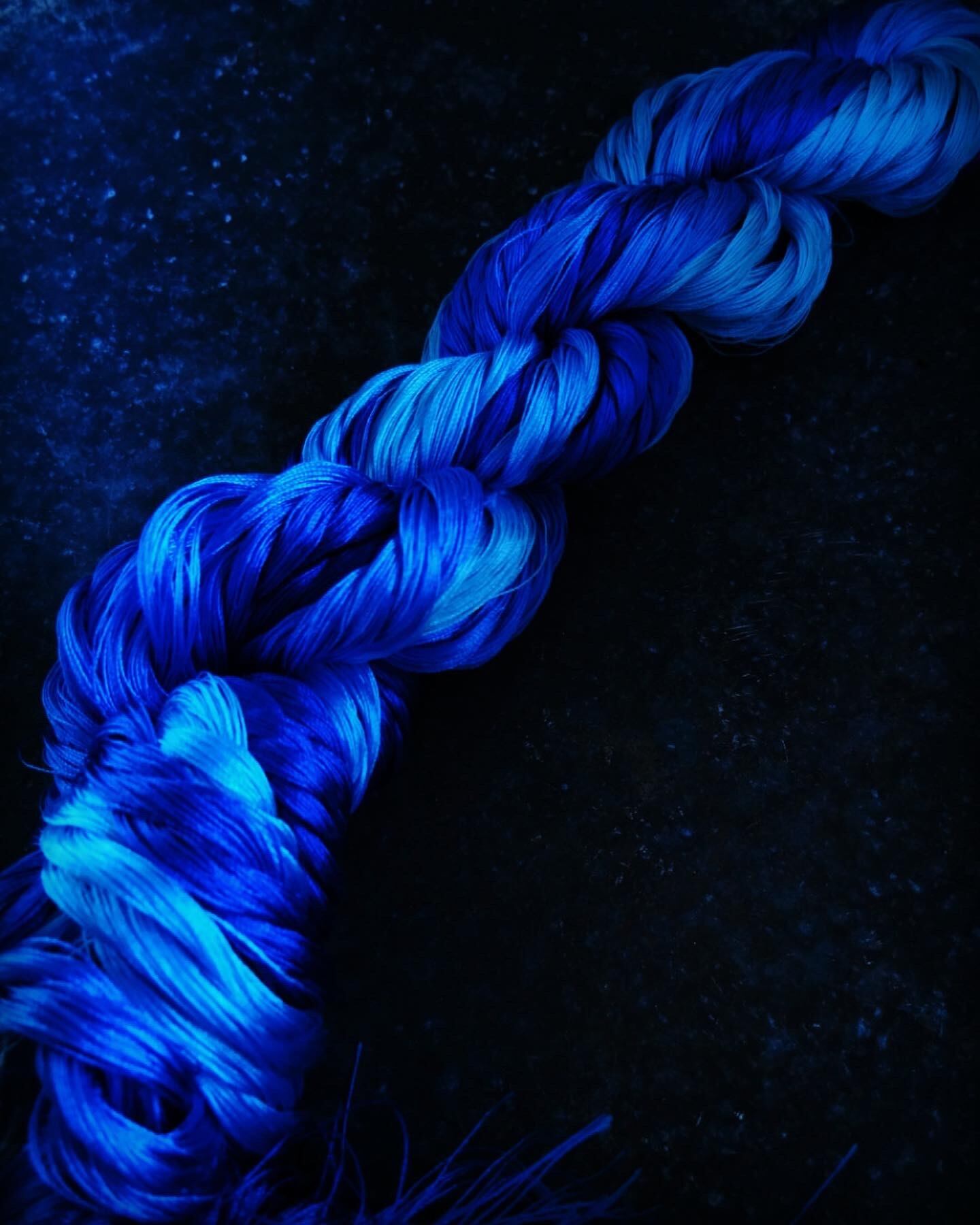 ※不要になった正絹帯締めの糸や、絹織物の残糸を丁寧に解き、アップサイクルしています。