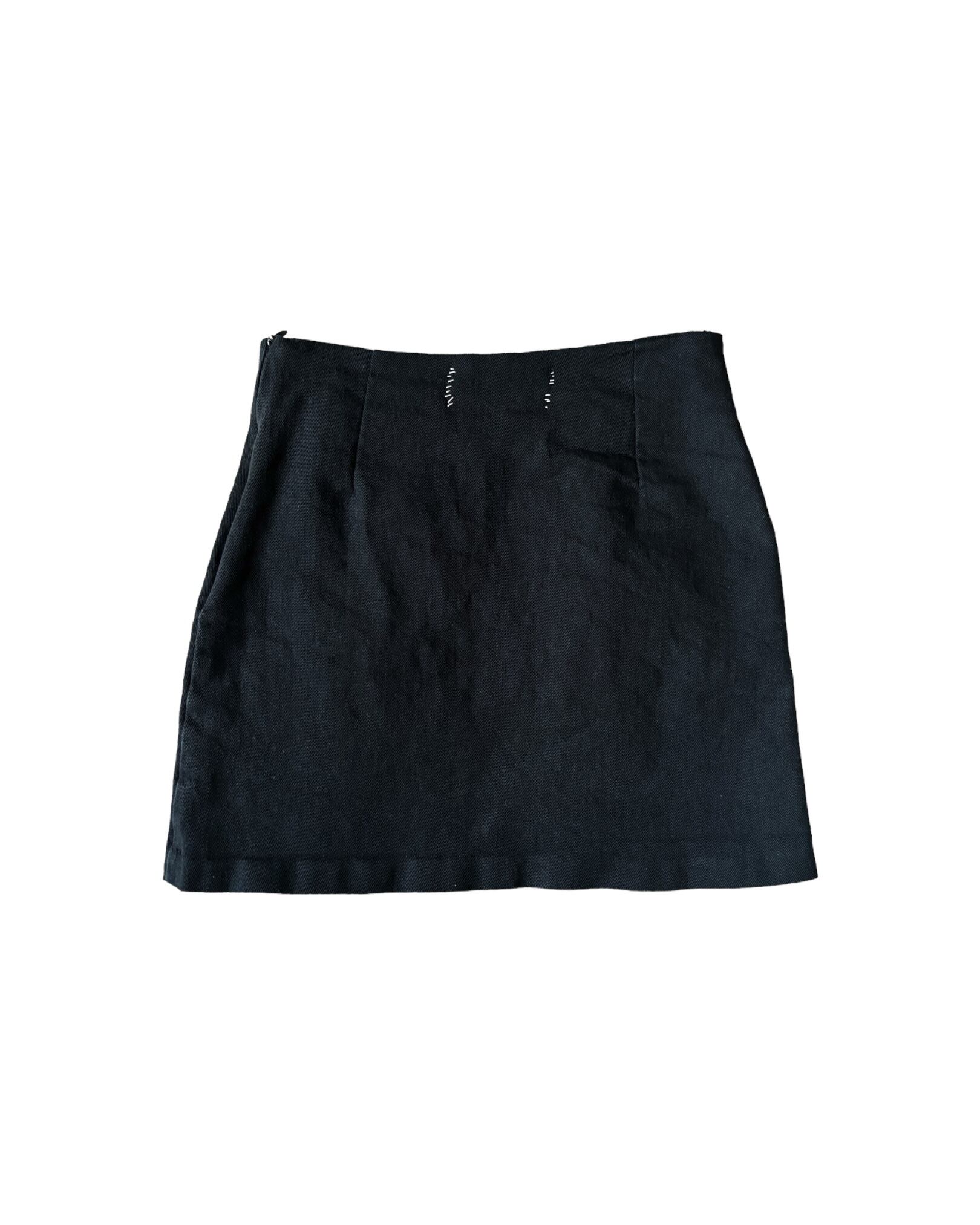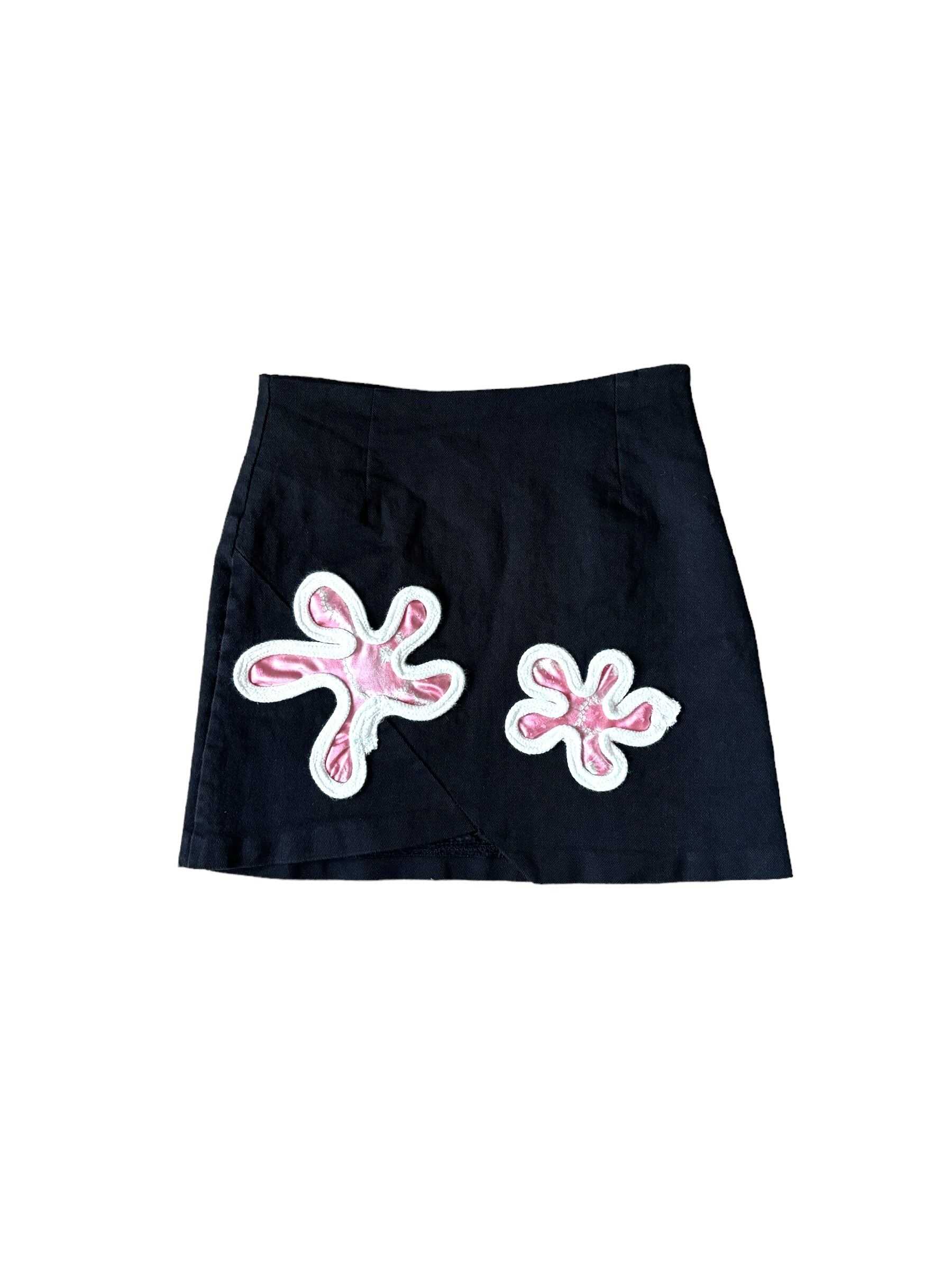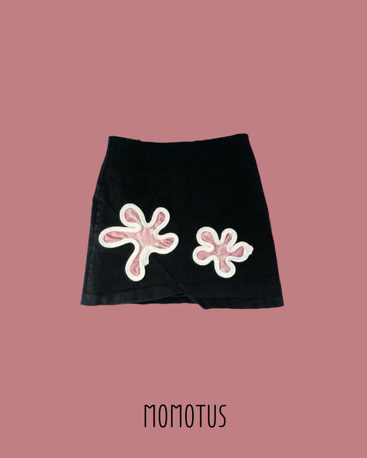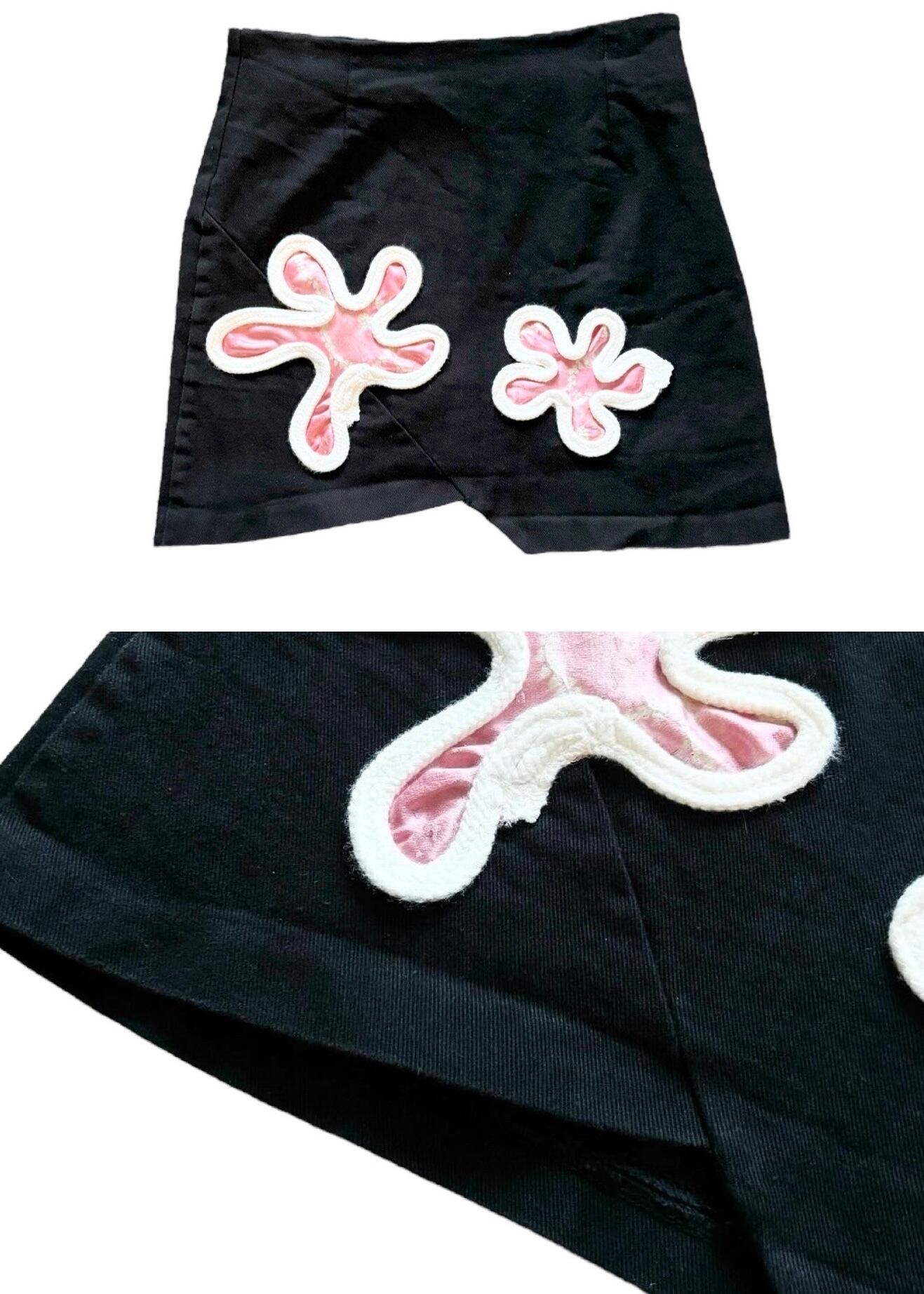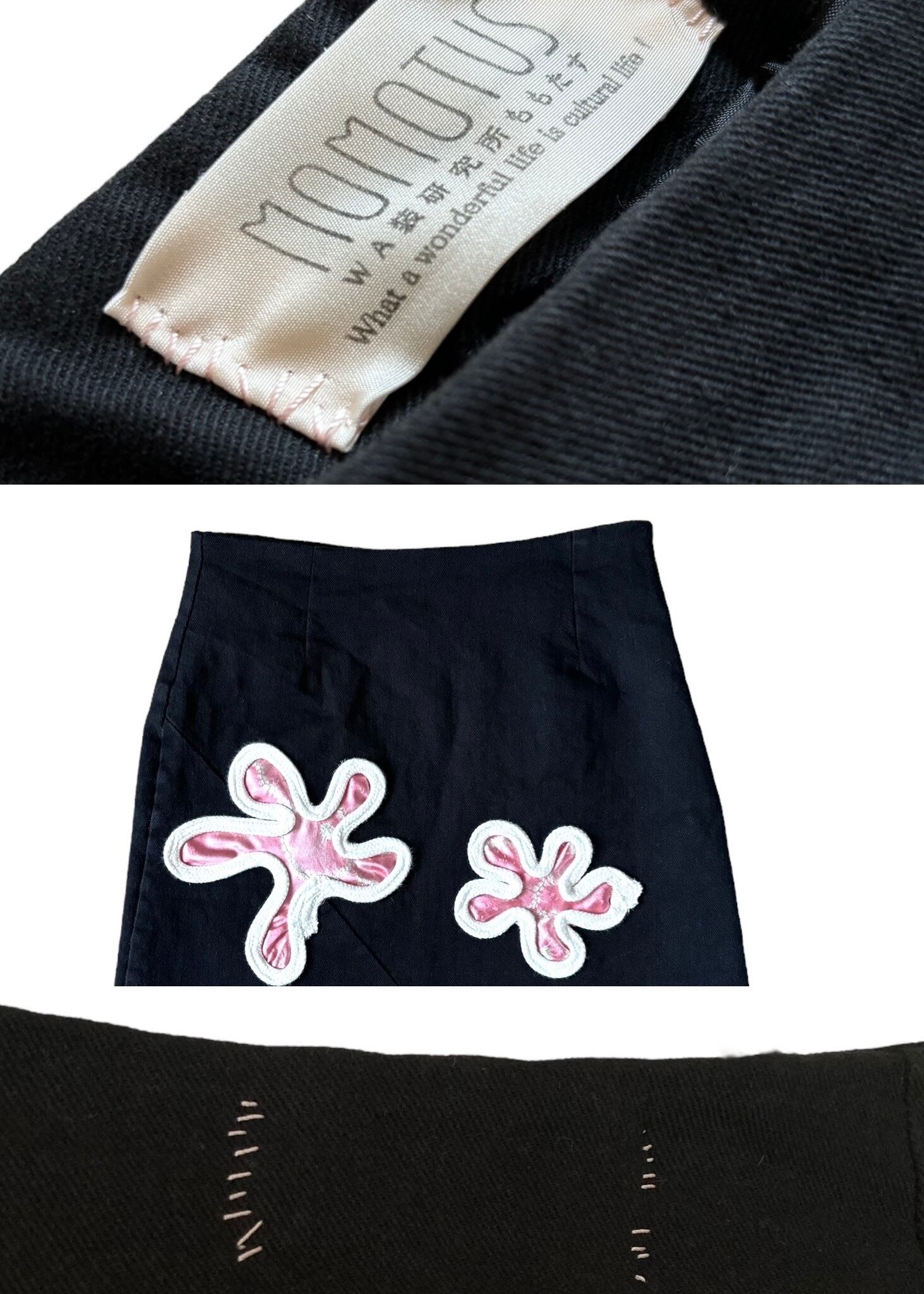 循環済♻️sold! no.350|和レトロなy2k古着(#ふら和あーちゃん)KIMONOlabリメイク! ブラックジーンズスカート・S (小さめサイズ)、花柄