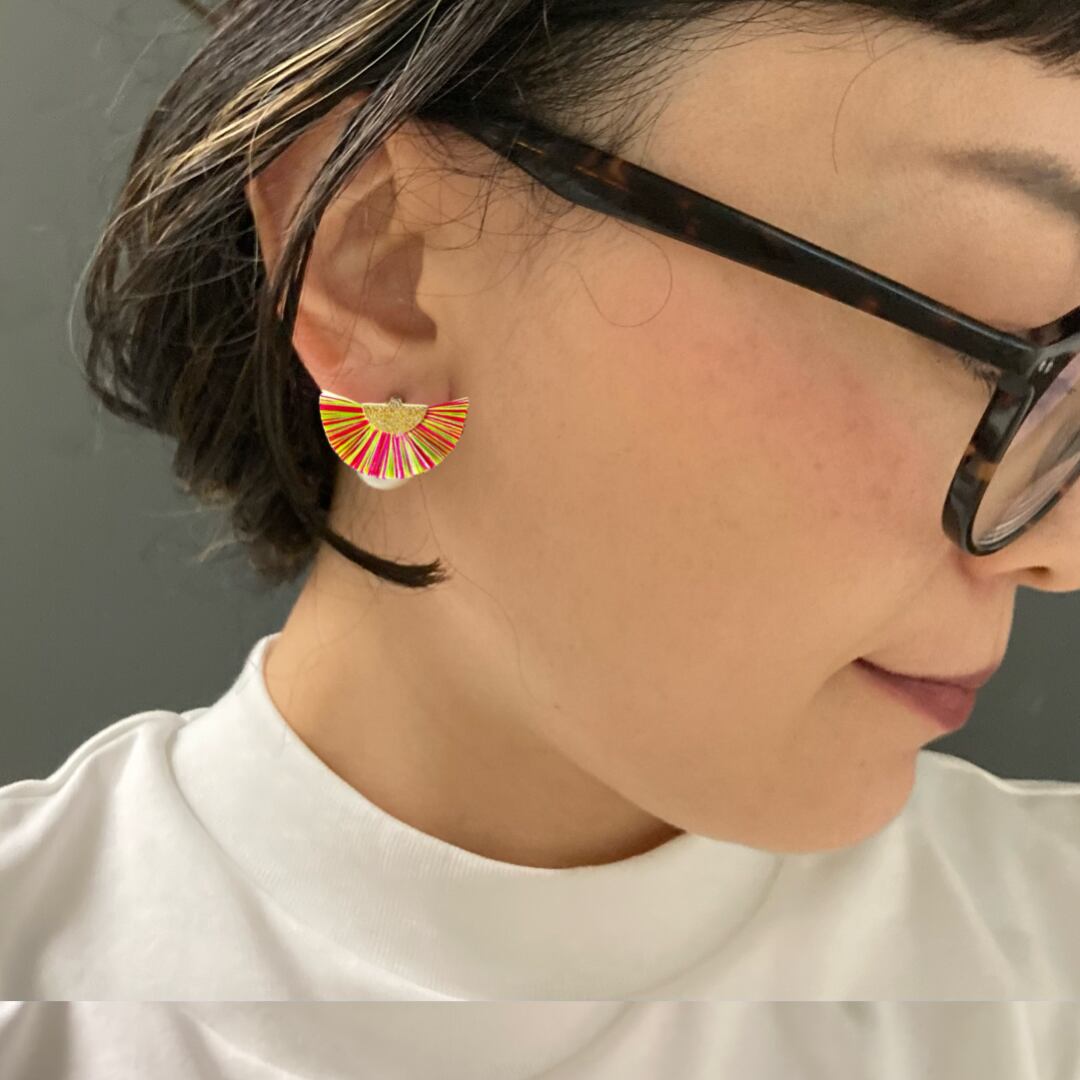 sold♻️no.361/NEMU_00g〔紅つつじ〕【reCAICO】#ネムの花の耳飾り 絹糸をアップサイクル!