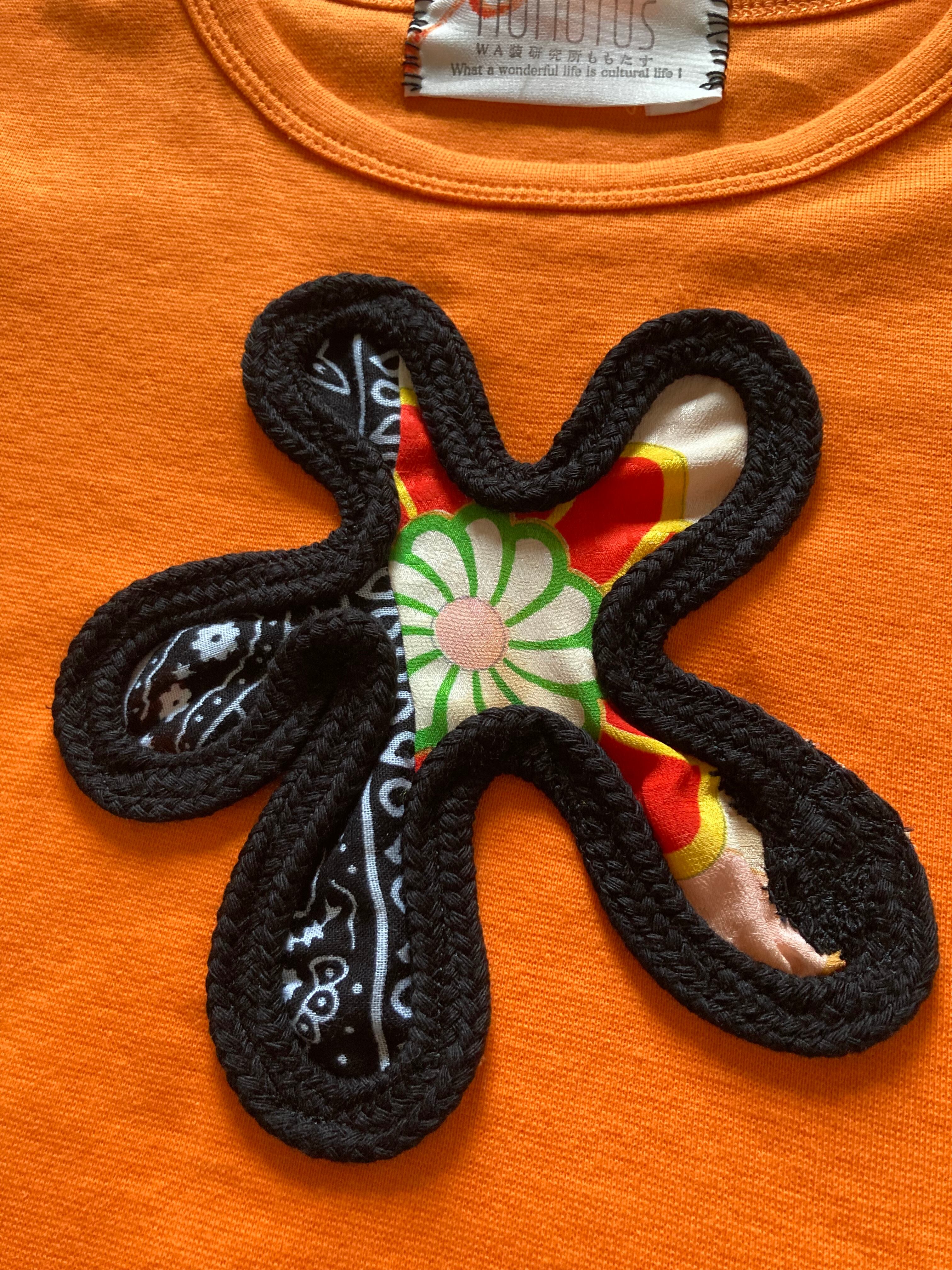 このお花モチーフは、東京のSHIBUYAを中心に大活躍されるとってもイカしたDJの方に浴衣を作らせてら頂いた時に誕生しました。DJのおしごとは、音楽を上手に繋いでフロアのグルーヴをつくる事!そんな楽しいvibesをシケらせないように、ポップでダンサブルな浴衣にしたくてイメージしていた時、このお花は生まれました!