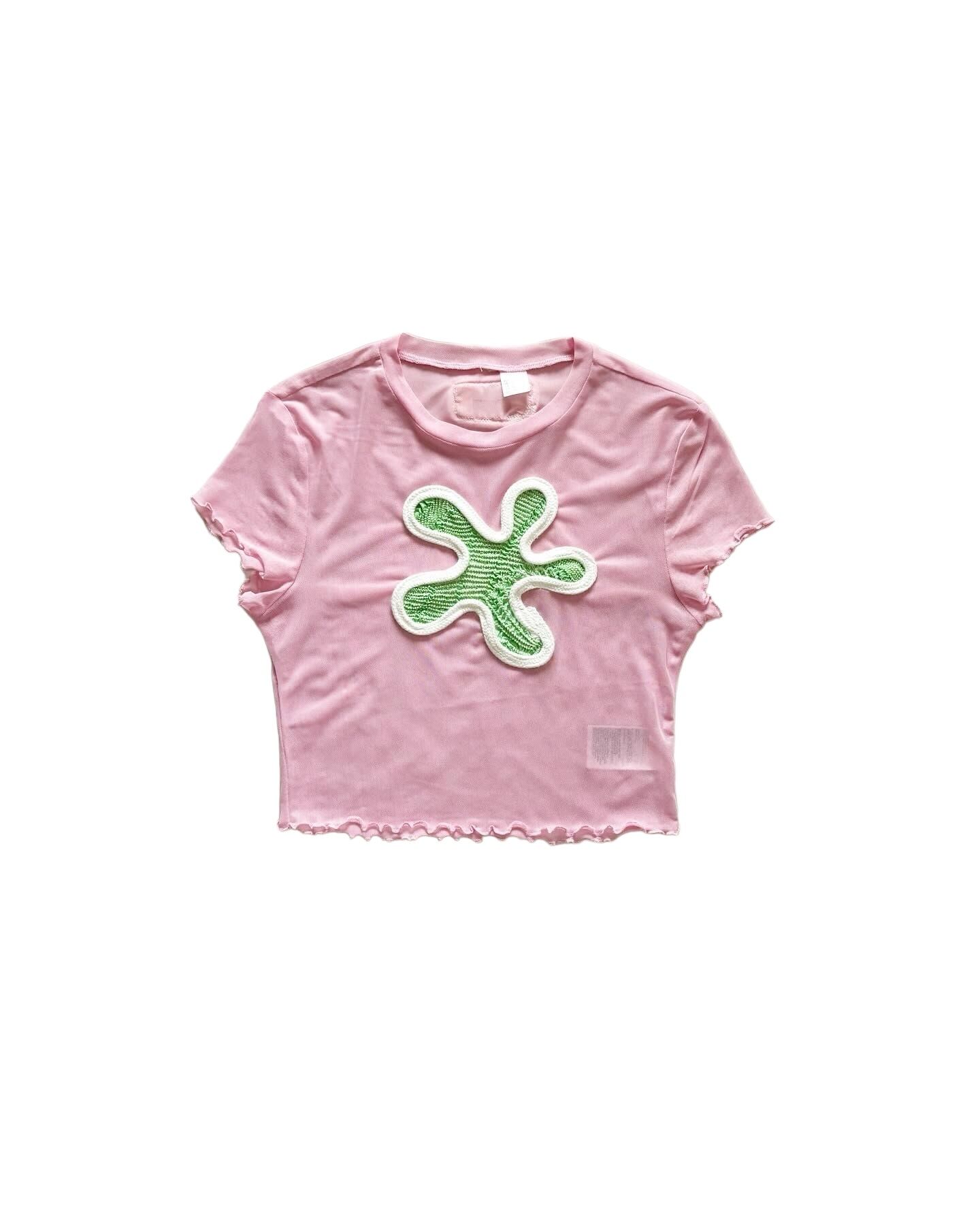 sold♻️ no.389|和レトロなy2k古着(#ふら和あーちゃん)KIMONOlabリメイク! シアートップス・クロップドT、メローロック、花柄