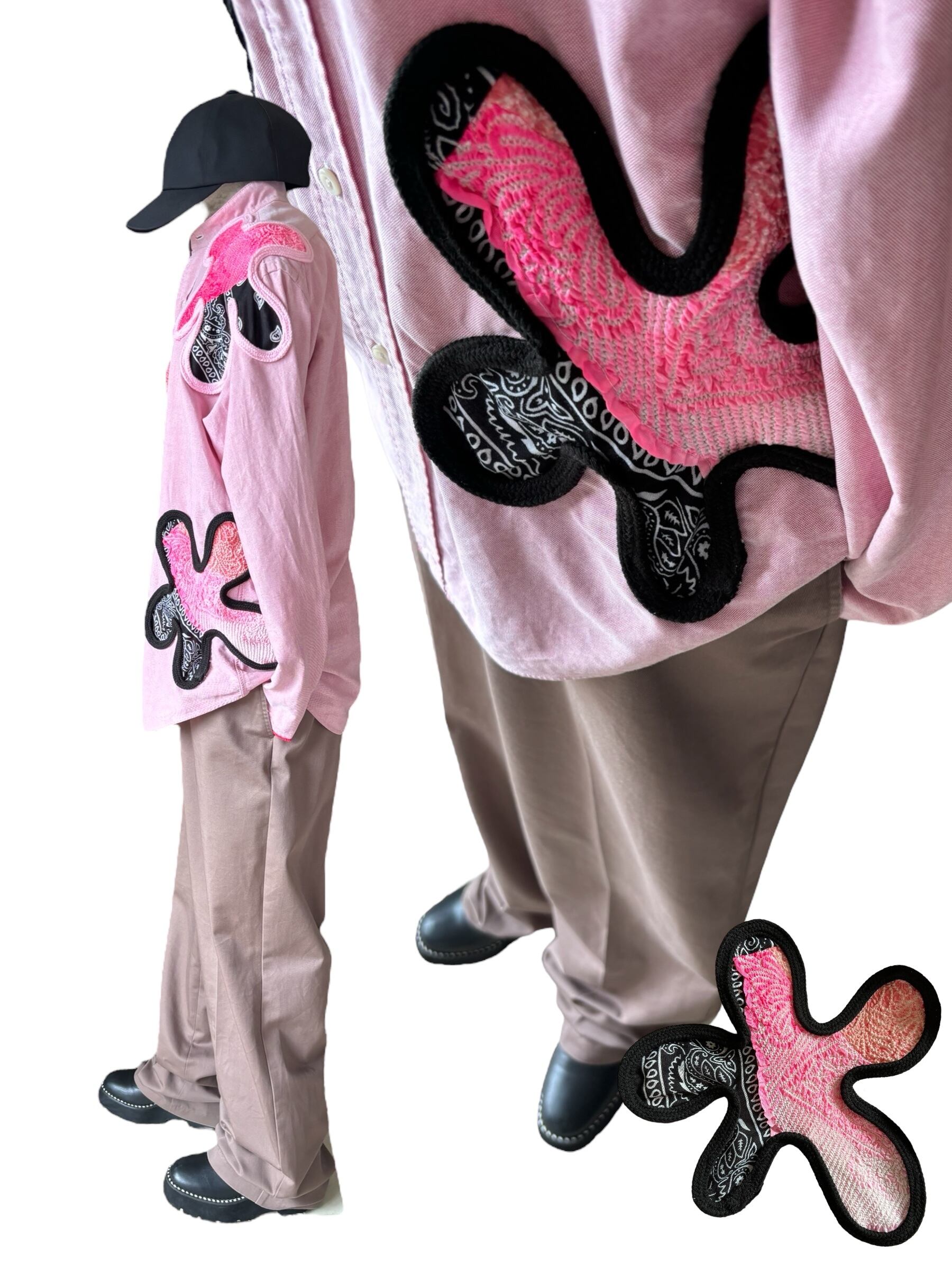 循環済♻️sold!no.392|村上隆・もののけ京都展・レセプションパーティーで和菓子職人REOさん御着用。和レトロなy2k古着(#ふら和あーちゃん)KIMONOlabリメイク! メンズシャツ・RalphLauren、オックスフォード、花柄