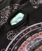 ブランドタグも着物の絹地を有効利用してひとつひとつ手作りし、手で縫い付けています。
